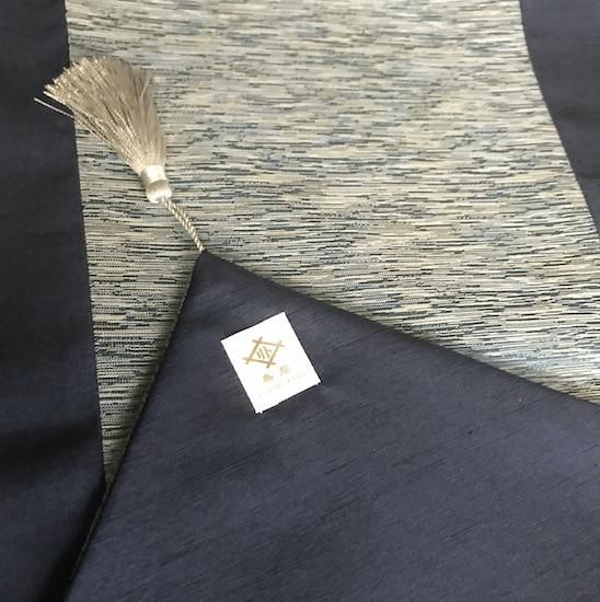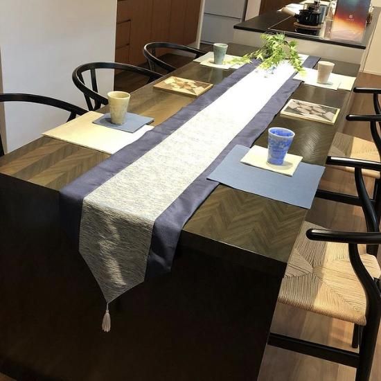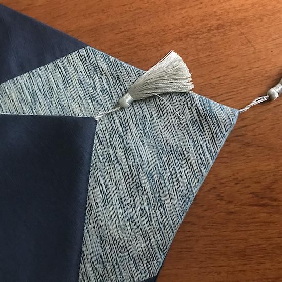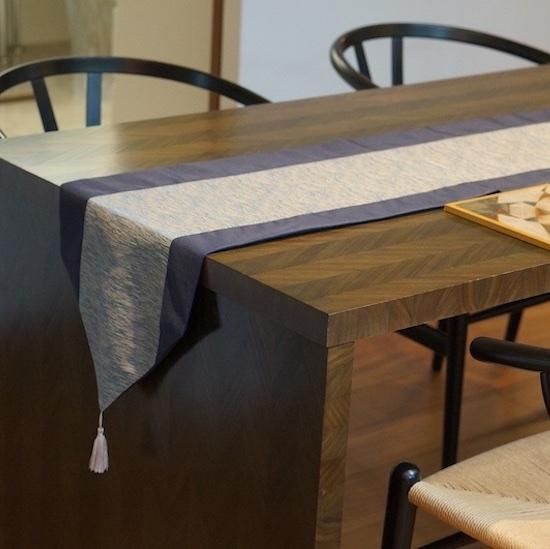 掛け軸の中廻しや一文字 上下に使う裂地を、二層仕立てのテーブルランナーに仕上げました。